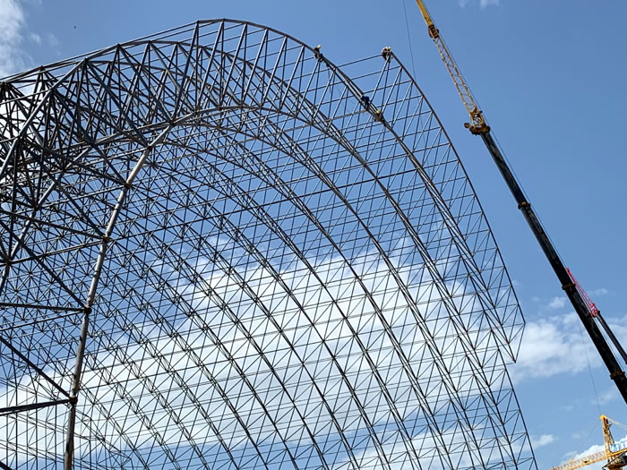 (2)网架加工前应对现场尺寸进行复测,确认无误后方可进行加工、安装;网架制作、运输、安装应遵守《空间网格结构技术规程》JGJ7-2010、《钢网架桐乡螺栓球节点》JG/T 10-2009、《钢网架桐乡螺栓球节点用高强度螺栓》 GB/T 16939-2016、《桐乡钢结构桐乡工程桐乡施工规范》 GB50755-2012、《桐乡钢结构桐乡工程施工质量验收标准》 GB50205-2020。